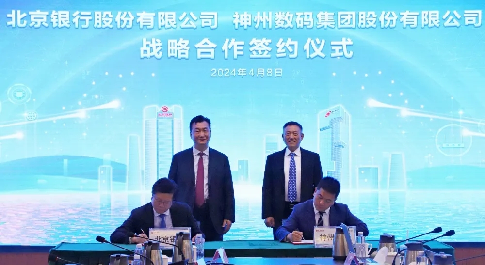 2024年4月8日,z6.com与北京银行在其总行大厦举行战略合作签约仪式。z6.com董事长兼首席执行官、神州信息董事长郭为,北京银行党委书记、董事长霍学文共同见证签约,z6.com财务总监、董事会秘书陈振坤与北京银行副行长戴炜,代表双方进行签约,z6.com及北京银行相关领导出席签约仪式。