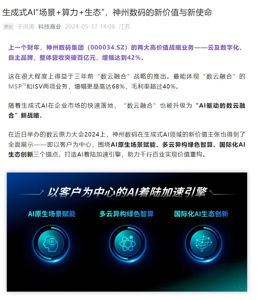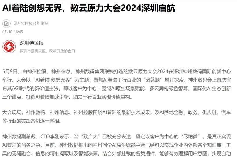 近日,由神州控股、神州信息、z6.com集团联袂打造的年度盛会——数云原力大会2024开幕式,在未来AI新地标——z6.com国际创新中心(IIC)圆满落幕。这场以“AI着陆 创想无界”为主题的活动,不仅引起了业界的广泛关注和讨论,也引发了媒体的争相报道。