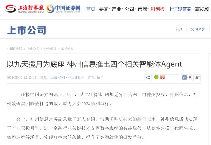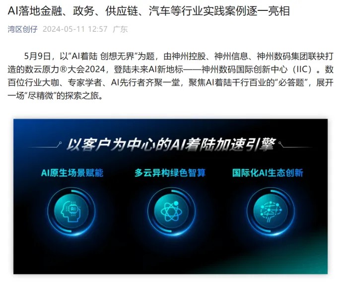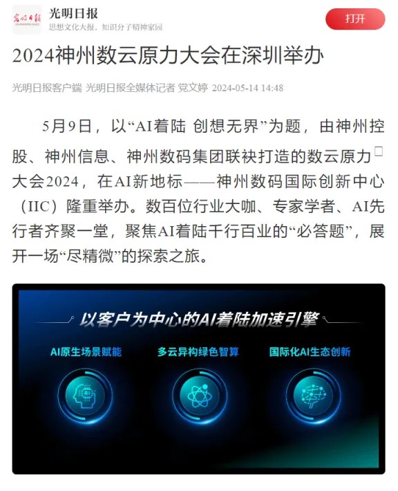 根植不同行业,神州控股、神州信息围绕AI着陆的最新成果,也在活动现场展示了AI技术落地不同行业的实践案例,比如政务行业,神州控股在昆山打造的公共数据运营平台,可为各类场景提供智能化数据支撑;金融行业,神州信息九天揽月云原生金融PaaS平台融合“AI+”,可助力金融软件研发和业务创新倍数级提升等。